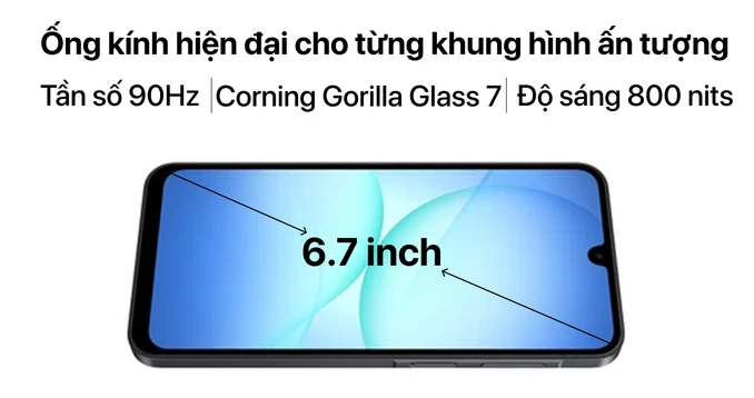 Galaxy A17 5G không chỉ gây ấn tượng bởi vẻ ngoài, mà còn vượt trội về độ bền. Máy được trang bị mặt kính cường lực Corning Gorilla Glass Victus ở phía trước, thường thấy trên các smartphone cao cấp, giúp nâng cao khả năng chống trầy xước và va đập. Nhờ vậy, người dùng hoàn toàn yên tâm khi sử dụng thiết bị hàng ngày.